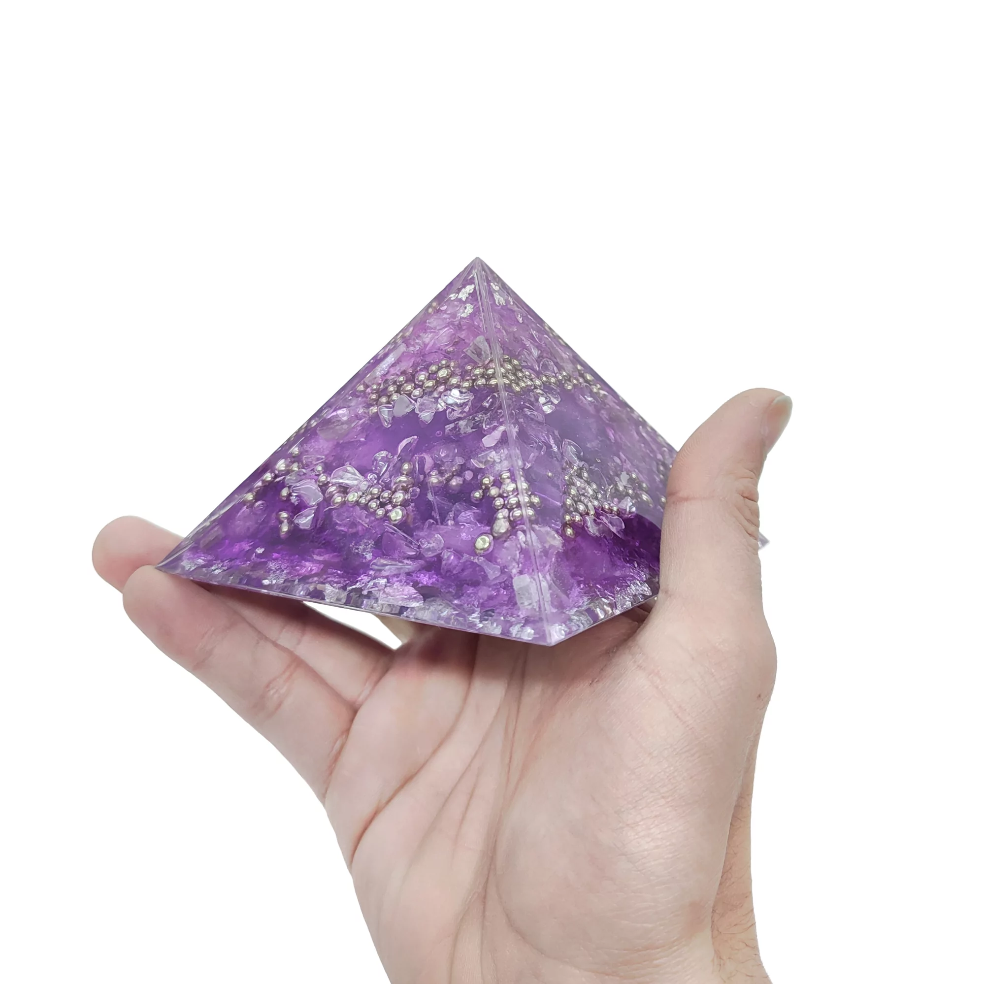 In der Mitte des Akasha Orgonits findet sich wie in allen anderen unseren Orgonit-Pyramiden ein in diesem Falle mit Metallen & Silber plattierter, trigonaler Energie-Kristall mit integrierter Ableitungsspirale. Inmitten dieses alchemistisch konzipierten Orgonit Kristalls befindet sich zudem ein Star-Seed, welcher aus Meteoriten & weiteren Gesteins-Granulaten gemeinsam mit Messing, Kupfer & Kunstharz eine noch kraftvollere, dem Kosmos zugewandte Einheit bildet.