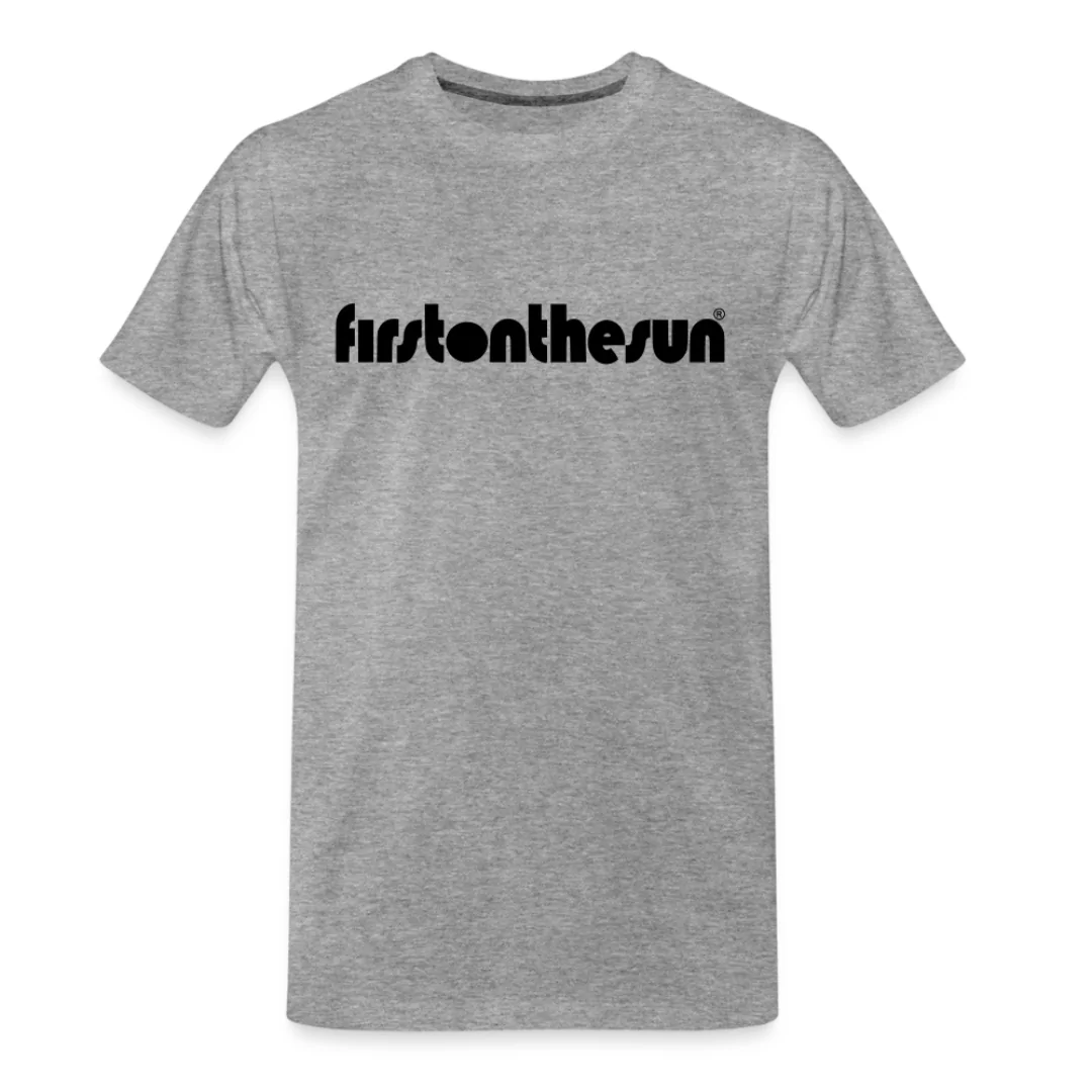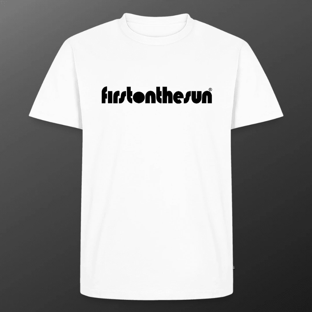 Das klassische firstonthesun® T-Shirt mit schwarzem Schriftzug – Standardmäßig in Weiß, zunehmend auch in anderen Farben verfügbar.