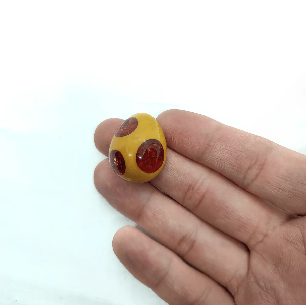 Das goldene Ei ist eine Orgonit Kreation aus unserer Collectors & Einzelstücke Reihe, welche die Sonnen-Affinen Edelsteine Citrin, Gelber Opal, Feueropal & Sonnenstein mit Laserkristallen, Herkimer Diamant & opalisierenden Elementen vereint. Der Grundkörper des goldenen Ei ist aus goldfarbenem Pastellharz gefertigt, welches unsere Signature-Farbe “Golden People” mit edlem weiß und Goldtönen vereint.