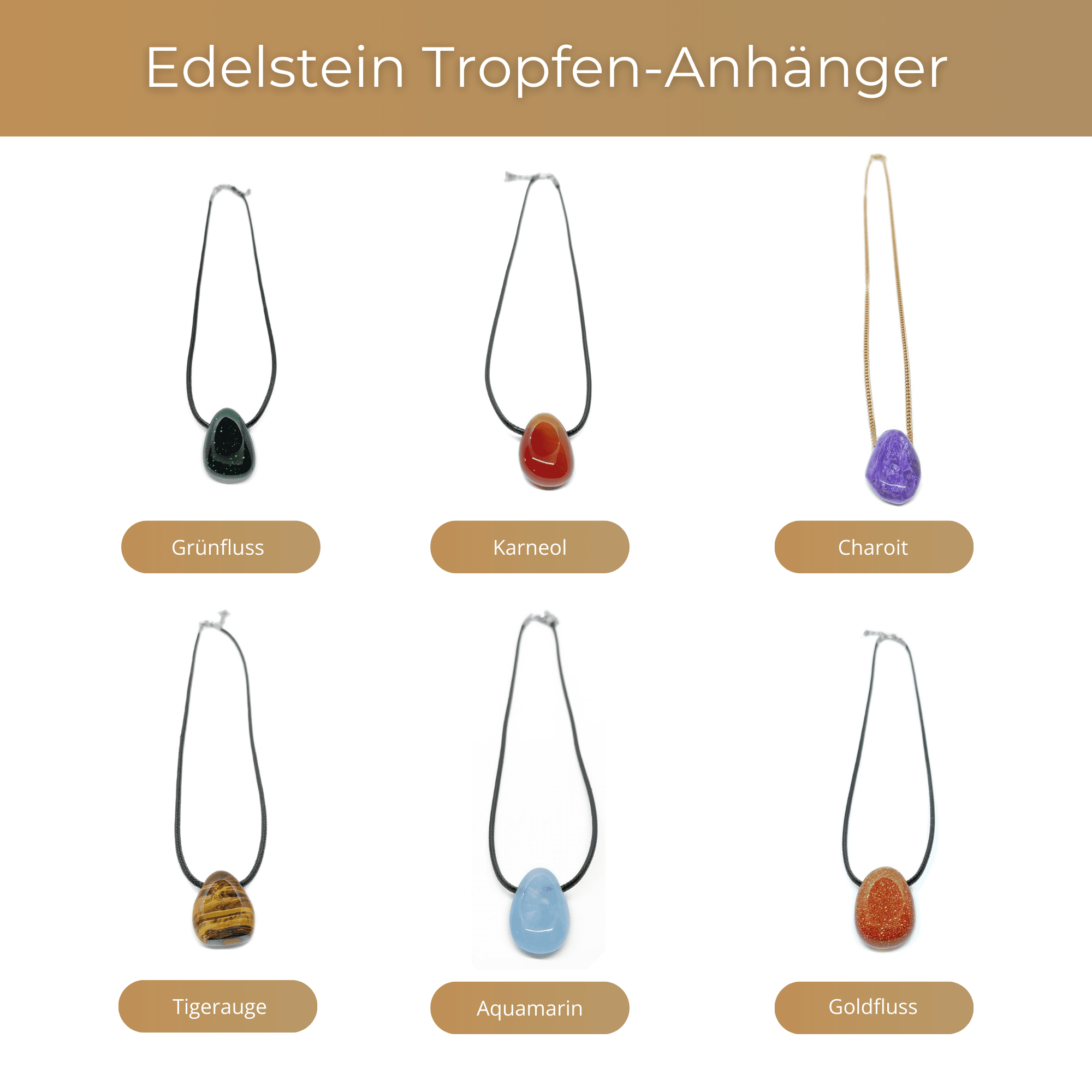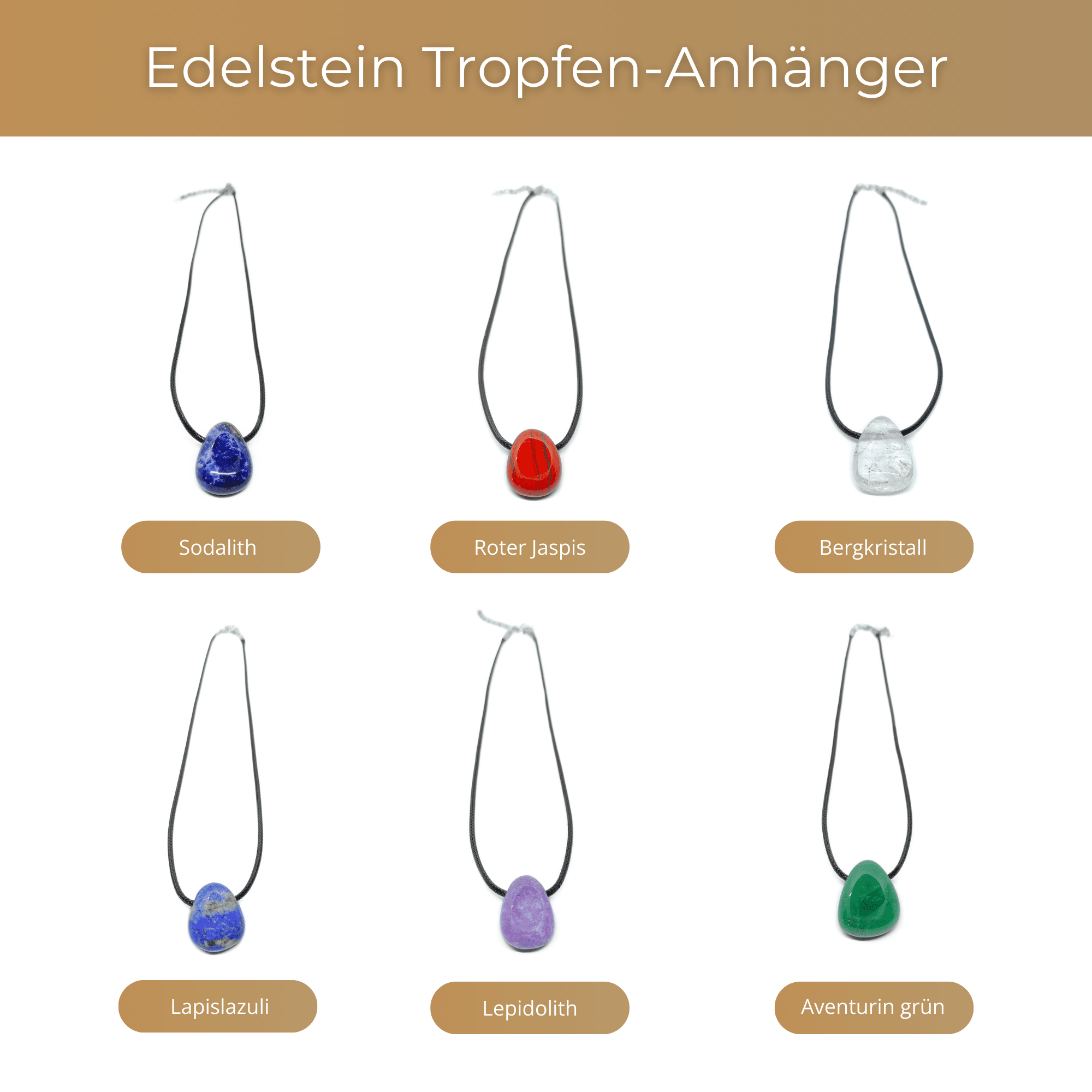 Diese wundervollen Tropfen-Anhänger bringen Ihnen in zeitloser Eleganz die Kraft der einzelnen Edelsteine näher.