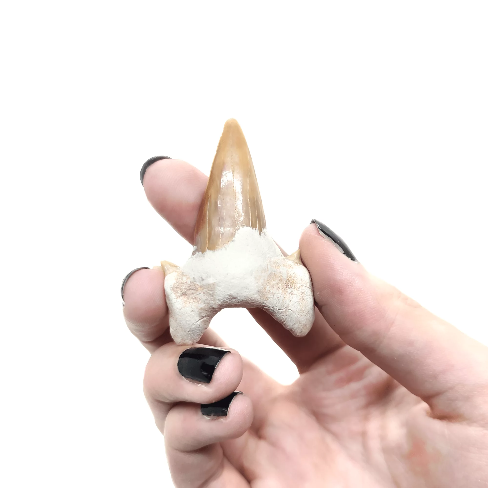 Ein jedes Haizahn Fossil ist stets ein Unikat, es sind diverse Größen verfügbar.