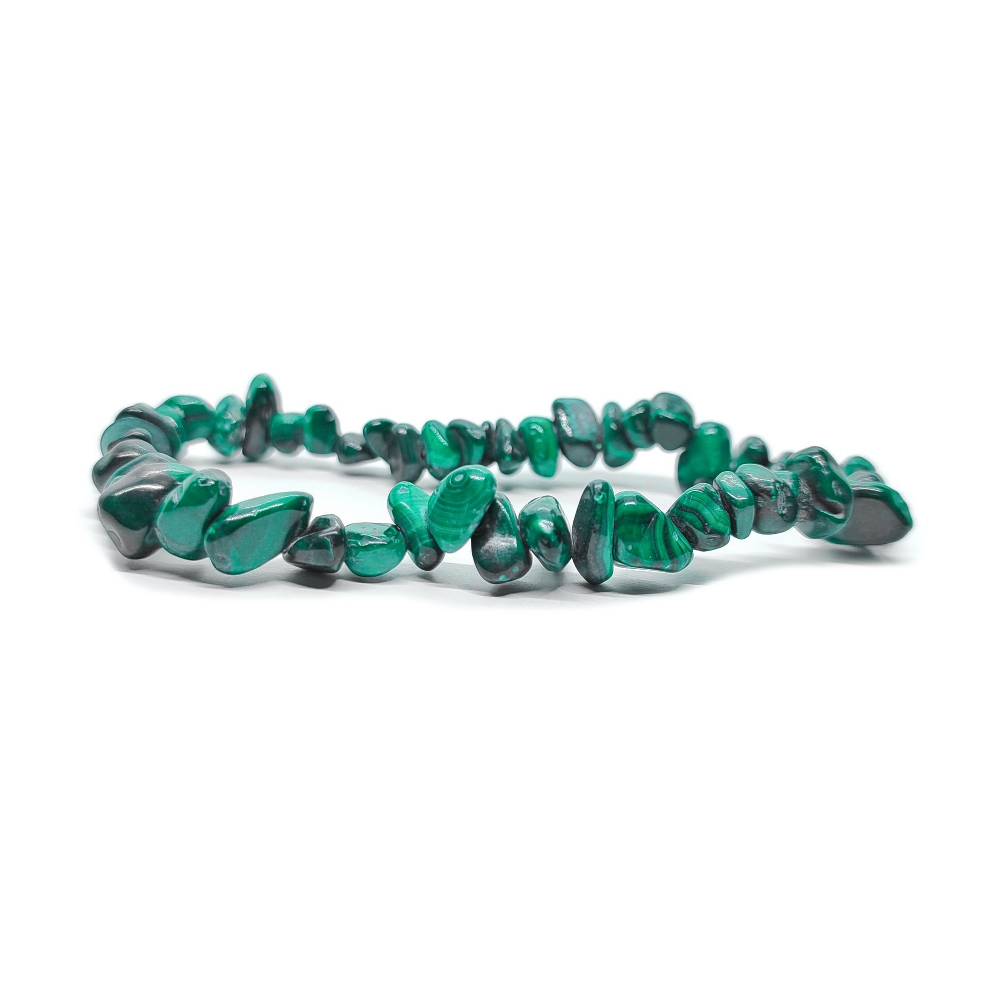 Dieses wundervolle Armband aus polierten Malachit-Splittern schmiegt sich mit seinen elementaren Kräften ans Handgelenk an & offenbart die Magie dieses wundervollen Juwels.