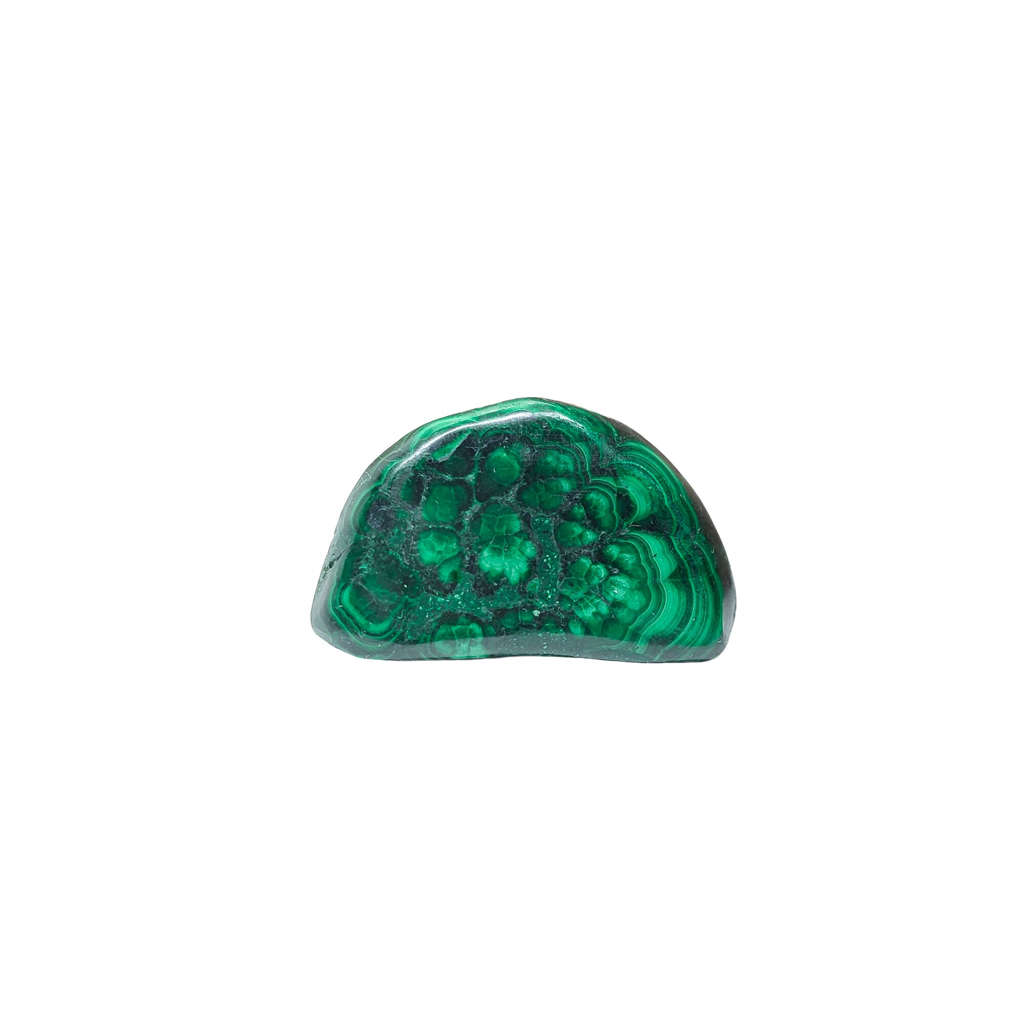Handpolierter Malachit Trommelstein mit ausgeprägtem Band-Muster.