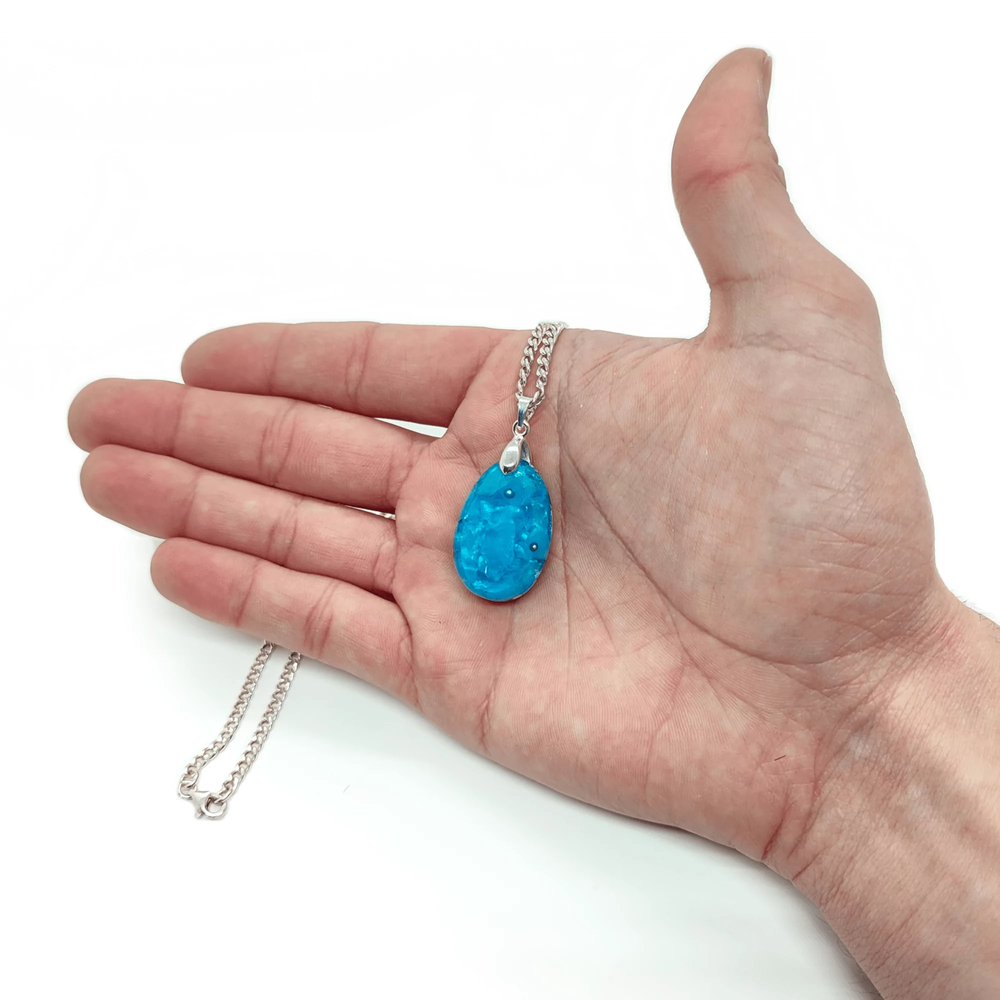 Dieses blaue Juwel stellt die sanfteste Form der Halschakra-Ansprache dar. Im Vergleich zum “Skysurfer” Orgonit, welcher durch Gold seine energetischen Prozesse intensiviert, vermag es fein abgestimmtes 925 Sterling Silber in seiner reinsten Form, die Essenz des Mondes & der Stille in den Orgonit Anhänger “Himmelsrufer” zu kanalysieren. Zudem bringt der Himmelsrufer einen stark ausgeprägten Schimmer mit sich, welcher die Brillanz dieses Orgon Anhängers hervorhebt und von jedem Blickwinkel aus eine neue Facette offenbart.
