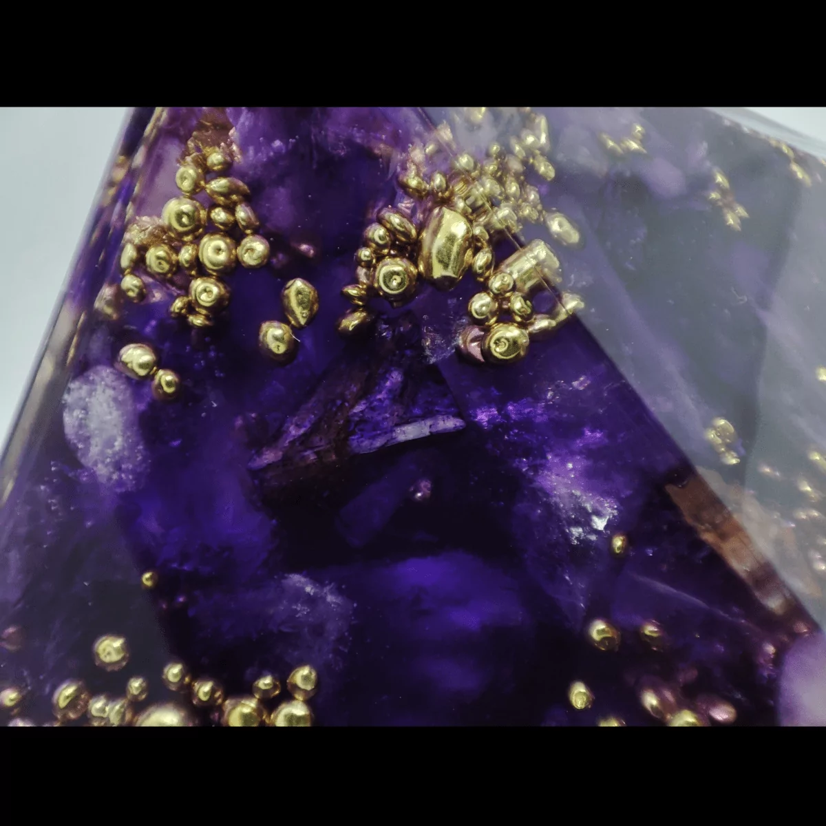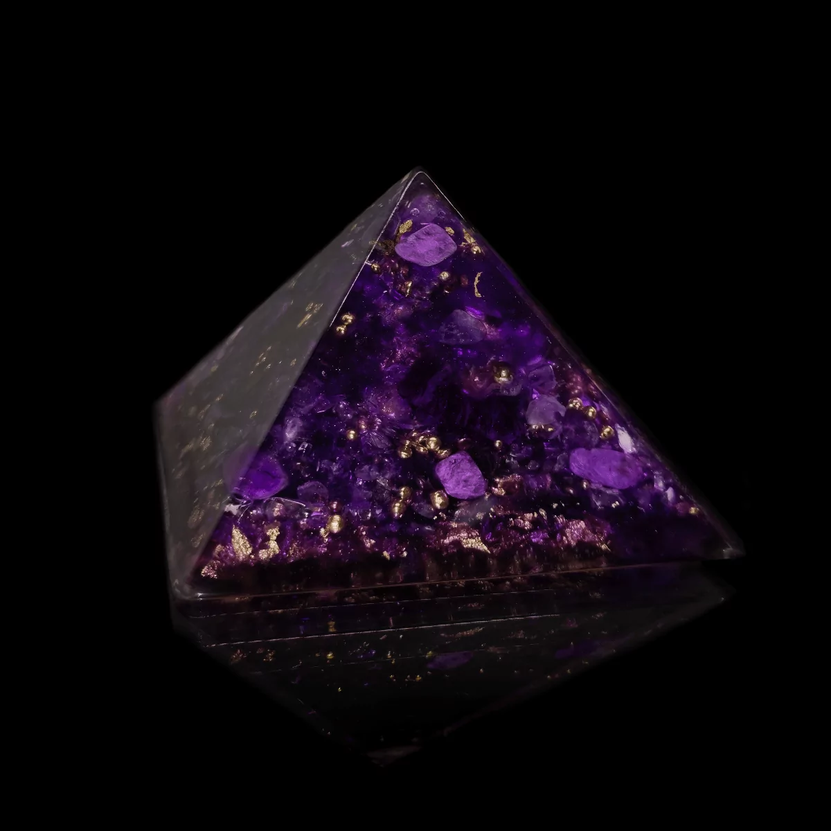 Was diese Orgonit Pyramide zusätzlich auszeichnet ist ihr Innenleben, welches aus einem alchemistisch hergestellten trigonalen Energiekristall besteht. Dieser wird aus Basisedelsteinen, Kupfer, Metalllegierungen & einer Energiespirale gefertigt und anschließend mit 24K-Gold und Messing platiert.