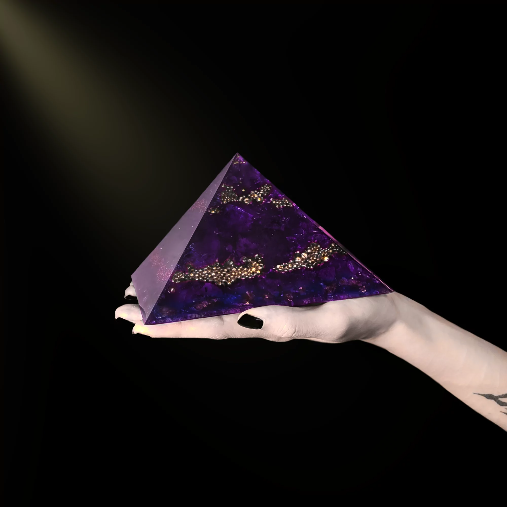Die Orgonit Pyramide “Traumwandel” gestaltet im größeren Umfang, was bereits unser Tau des Lebens “Traumwandler” als kleines Schmuckstück vollbringt. Sie vereint die Kraft violetter Edelsteine zu einem einzigartigen Transformations-Erlebnis zum Fühlen & Erleben. Traumwandel ist zugleich der Name unserer tiefvioletten Signature-Farbe.