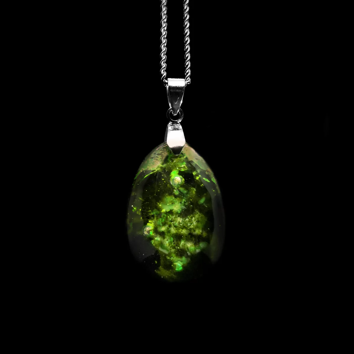 Ein mystischer Orgonit-Schmuck Anhänger in Grün. Kennen Sie bereits unseren Orgonit Anhänger “Lava” in seiner traditionellen Form? Nun, als erste Shiny Variante in unserem Online-Shop findet dieser sich in einem alternativen Farbgewand wieder. “Schillernde”, “Shiny” oder weitere Bezeichnungen von andersartig gefärbten Kreaturen oder Gegenständen haben es bereits in die größten Video oder Gesellschaftsspiele aller Zeiten geschafft und wir sind stolz, ein ähnliches System für besondere spirituelle Schmuckstücke präsentieren zu können.