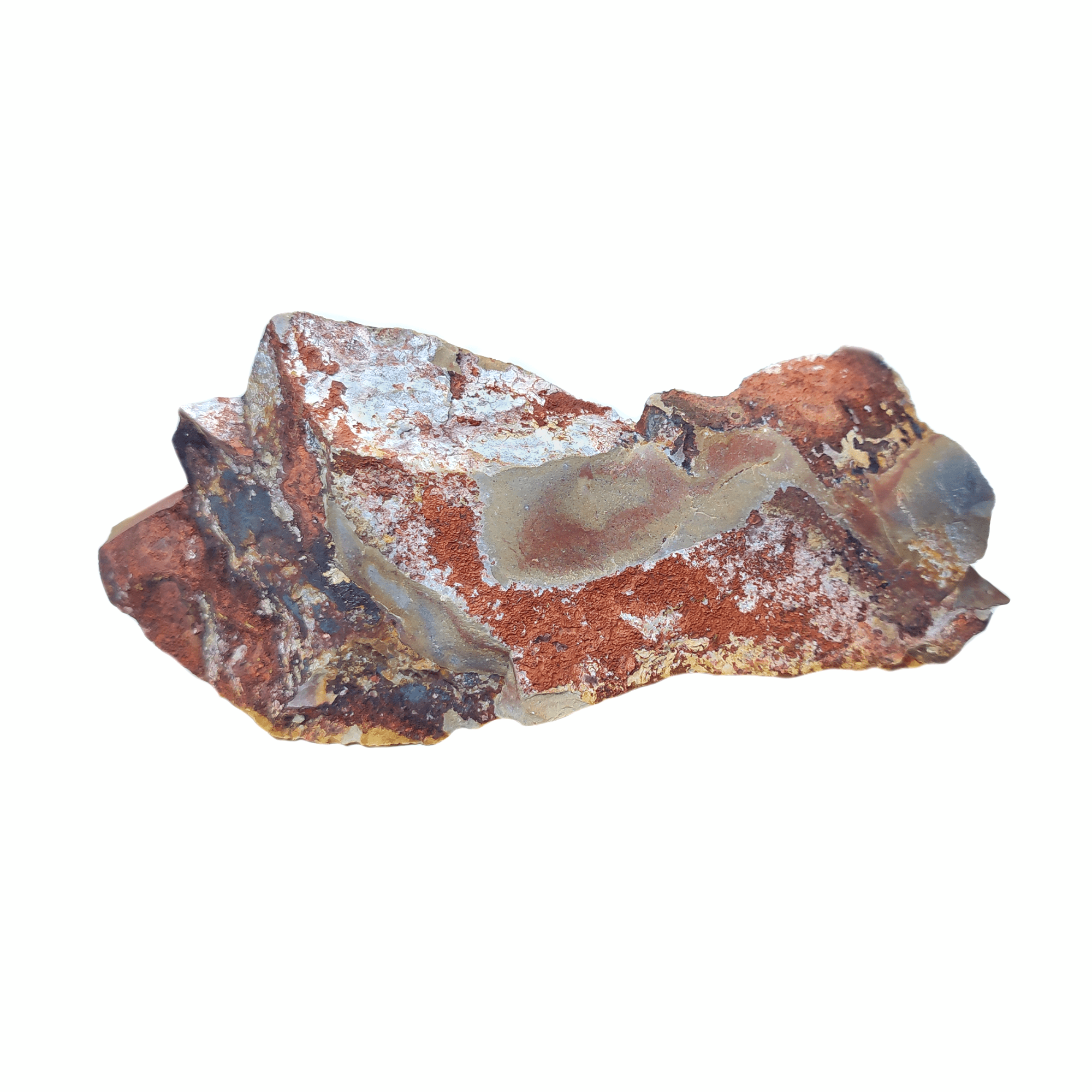 Ein rötlich, braun, weiß & grauer Regenbogenjaspis Roh Kristall.