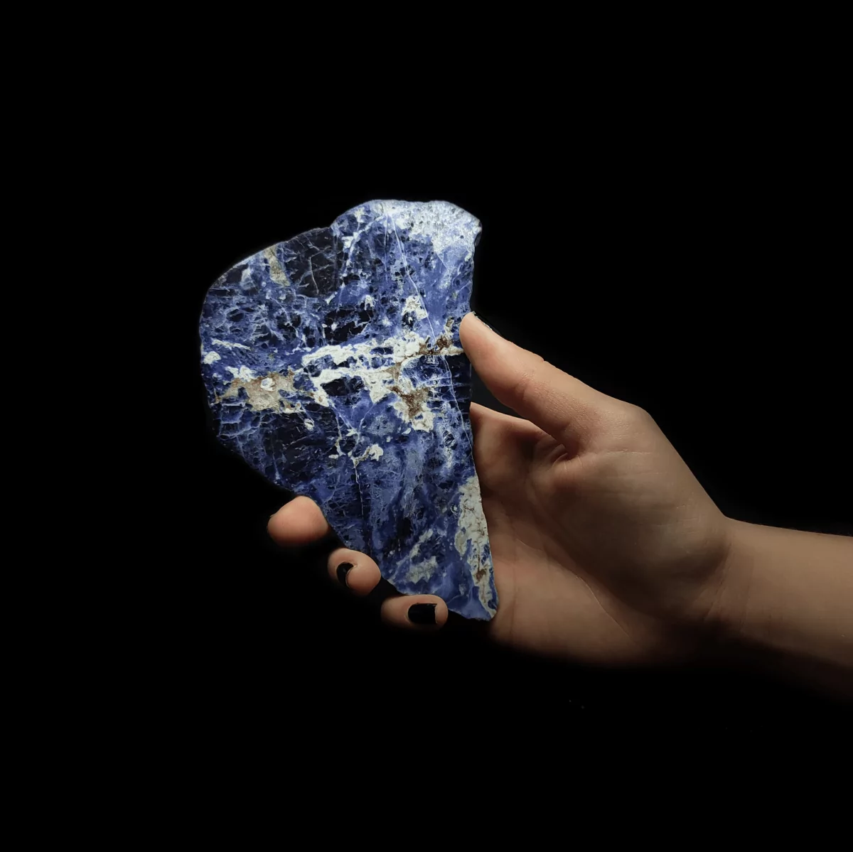 Eine Scheibe Sodalith Edelstein in AAA-Qualität, einseitig poliert. Jedes Stück ein Unikat. Wählen Sie Ihre Sodalith-Wunschgröße!