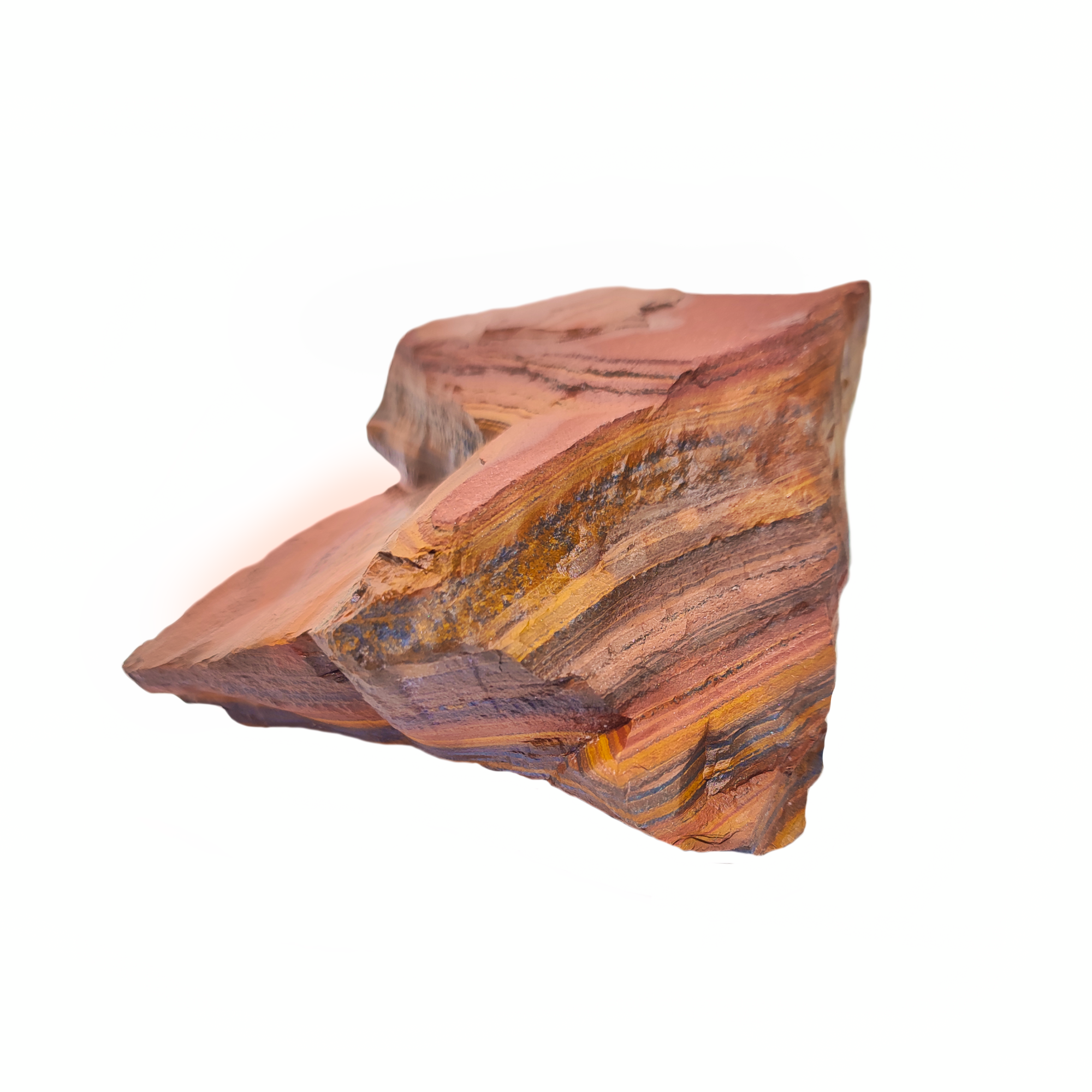 Ein braun, gelb & rot gestreifter Sunset Jaspis Rohstein.