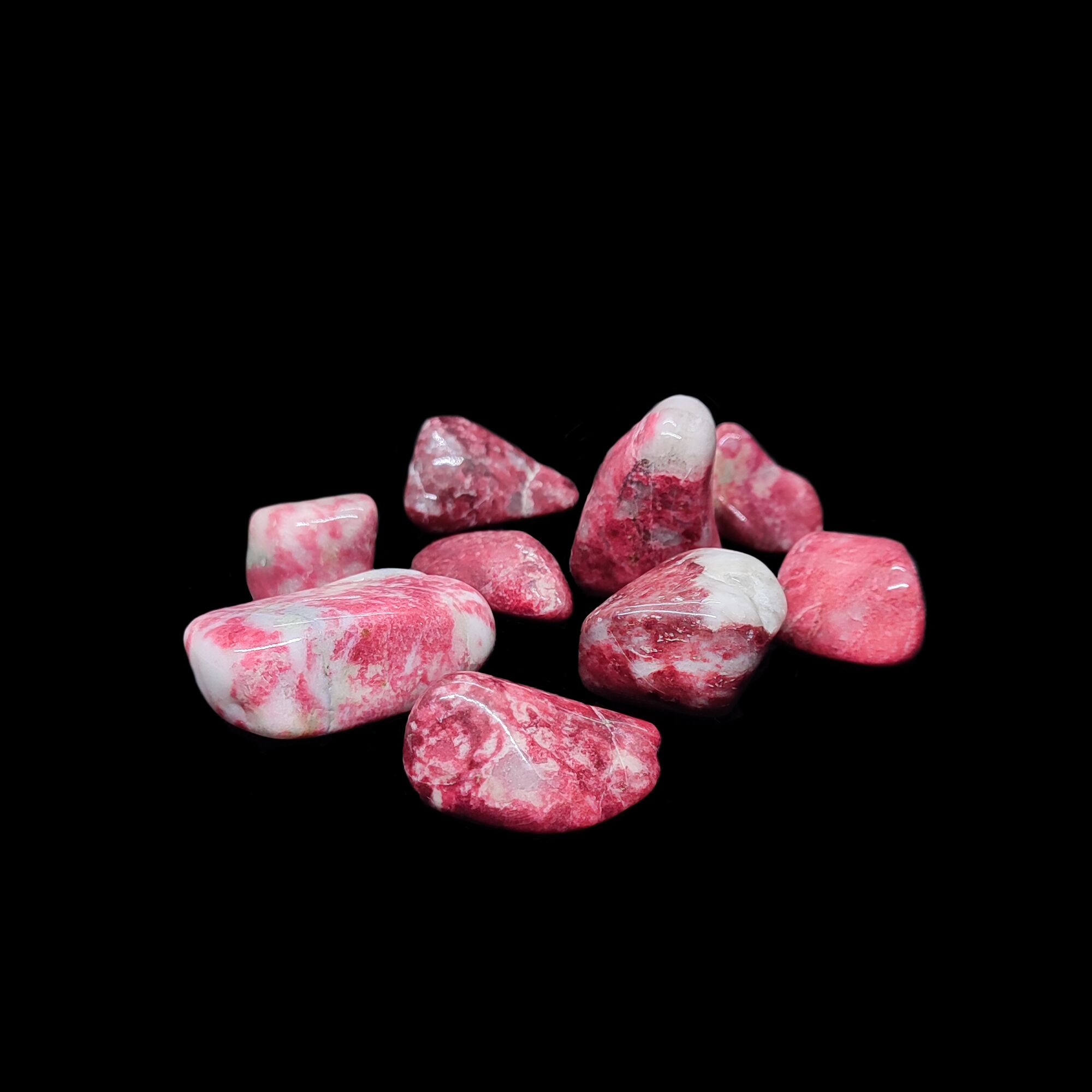 Mit dem Thulit hat man stets ein kleines Stück nordischer Magie im eigenen Zuhause. Neben unseren klassischen Thulit Rohsteinen sind diese Trommelsteine eine beliebte Wahl. Sie bieten ein spannendes Farbspiel aus roten, rosa-farbenen, sowie weißen Kristall Arealen & können sowohl zur Meditation, als auch Chakrenarbeit angewendet werden.