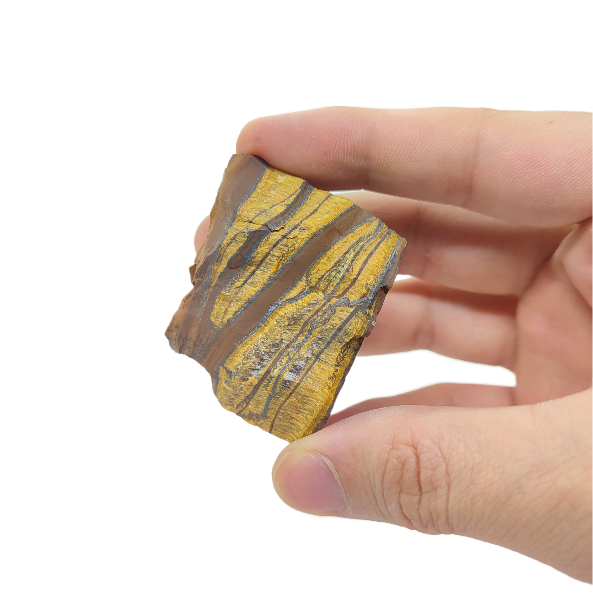 Die Maße eines jeden Tigereisen Rohsteins [M] bewegt sich zwischen 2-4cm; insofern andere Größen wie [L] oder [XL] verfügbar sind, können sie diese selbstverständlich als Variante auswählen.
